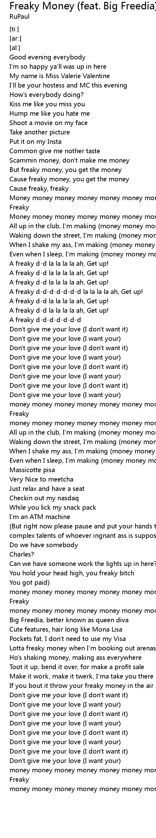 Cause freaky money, you get the money |