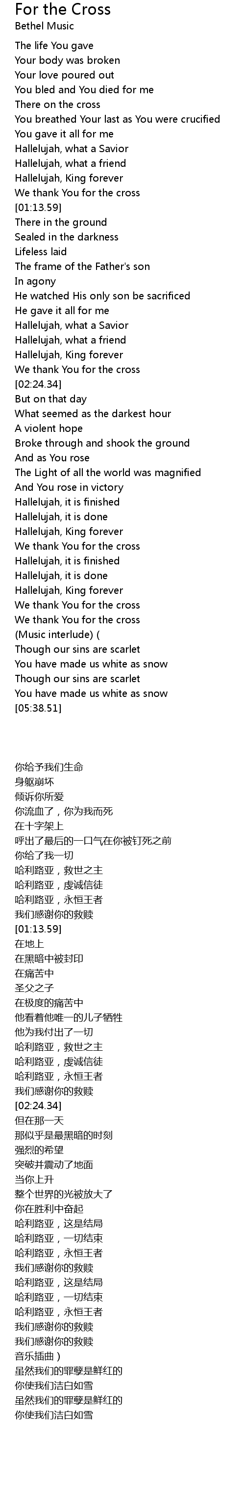 | [03:49.34] | We thank You for the cross |