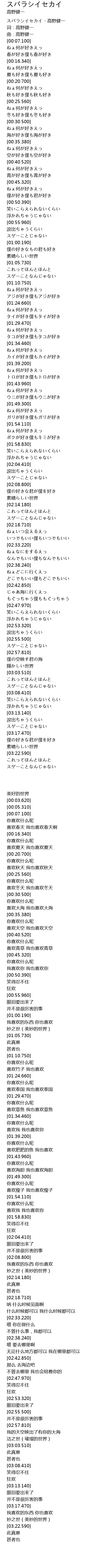スバラシイセカイ - 高野健一 |