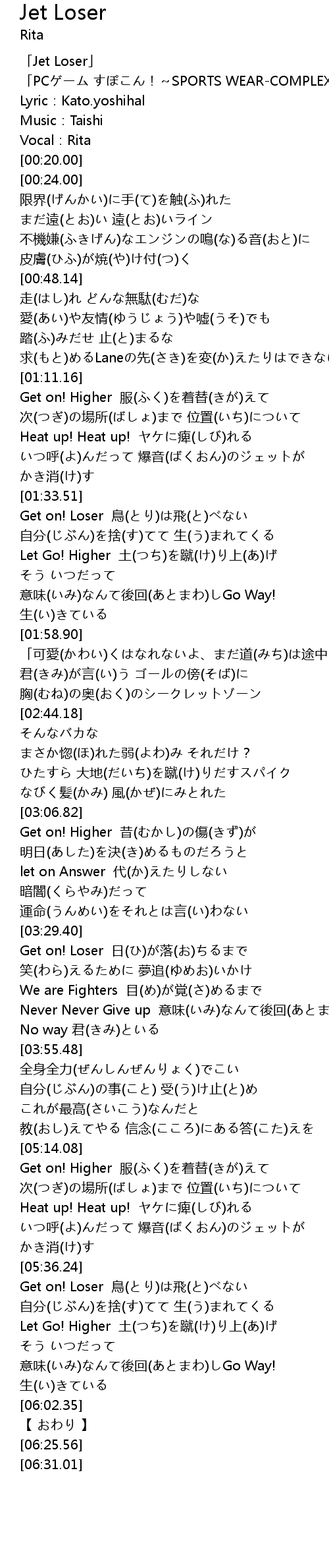 | [03:29.94] | Get on! Loser 日(ひ)が落(お)ちるまで |