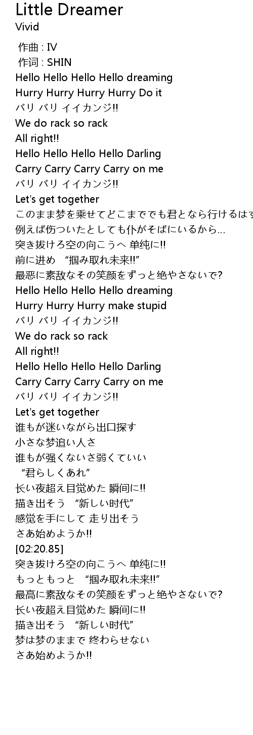 | [01:19.79] | Hello Hello Hello Hello dreaming |