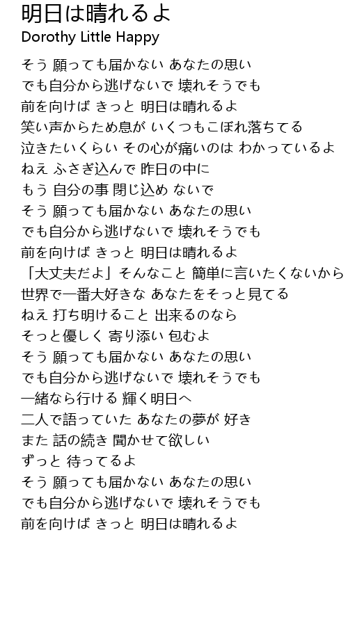 | Song | 明日は晴れるよ |