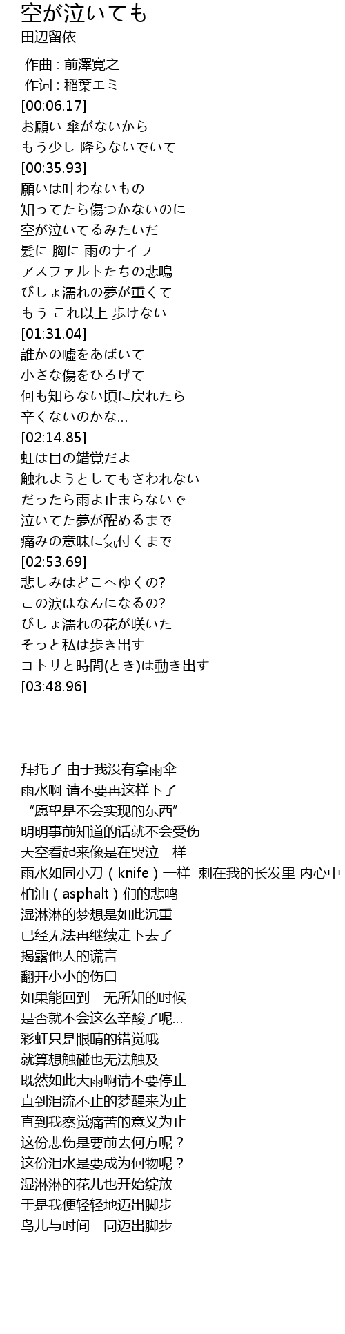 | [00:52.10] | 空が泣いてるみたいだ |