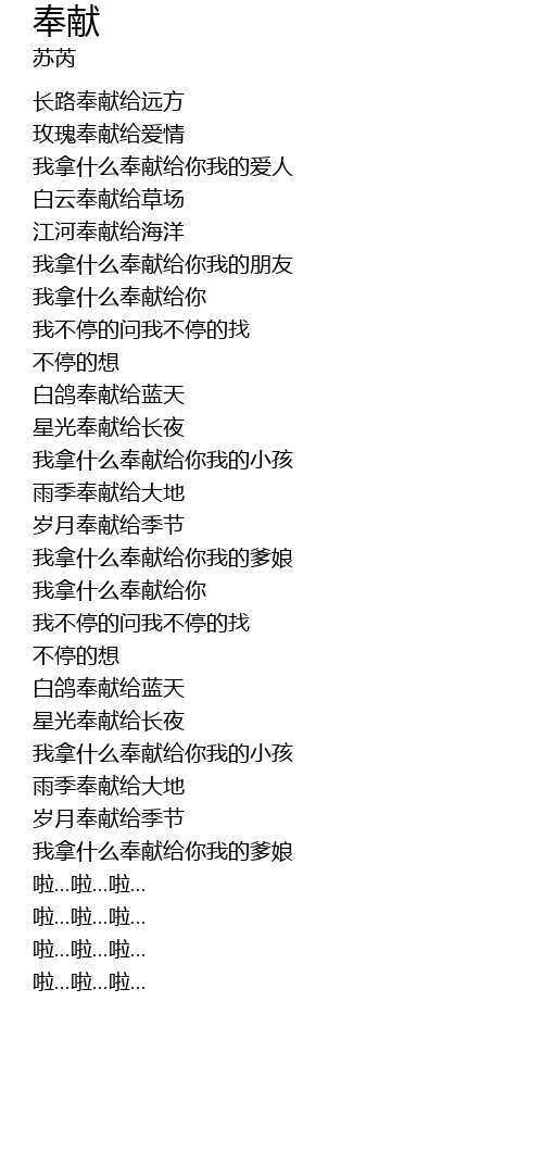 | [00:40.550] | 我拿什么奉献给你我的爱人 |