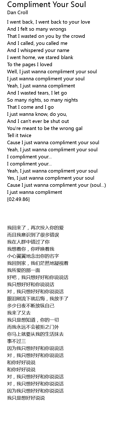 Cause I just wanna compliment your (soul...) |