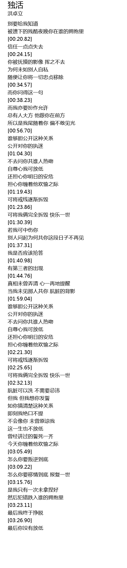 | [01:33.08] | bié rén wèn qǐ wèi hé gòng nǐ zhè duàn rì zi bù zài jiàn |