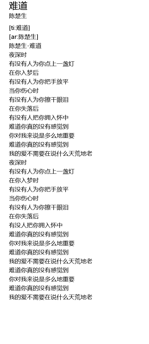 | [00:03.423] | 陈楚生-难道 |