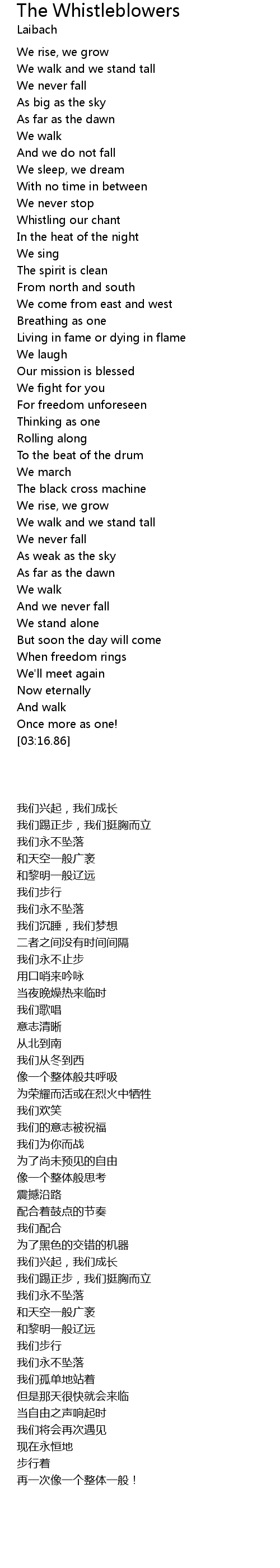 | [02:15.53] | We walk and we stand tall |