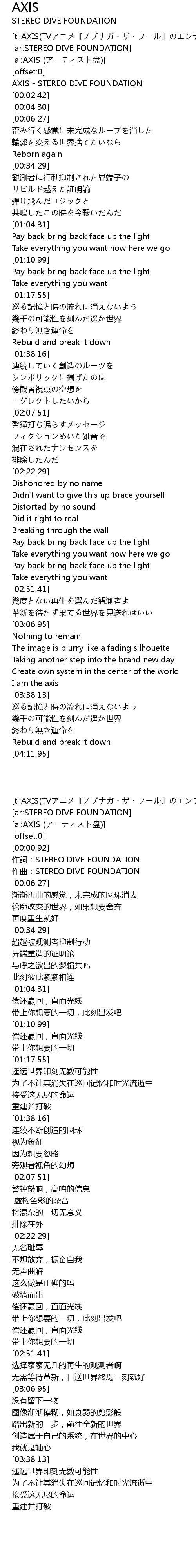 | [ti:AXIS(TVアニメ『ノブナガ・ザ・フール』のエンディング主題歌)] | |