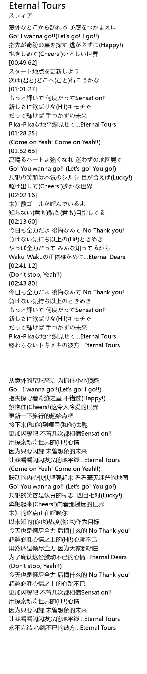 | [03:37.22] | 終わらないトキメキの彼方…Eternal Tours |