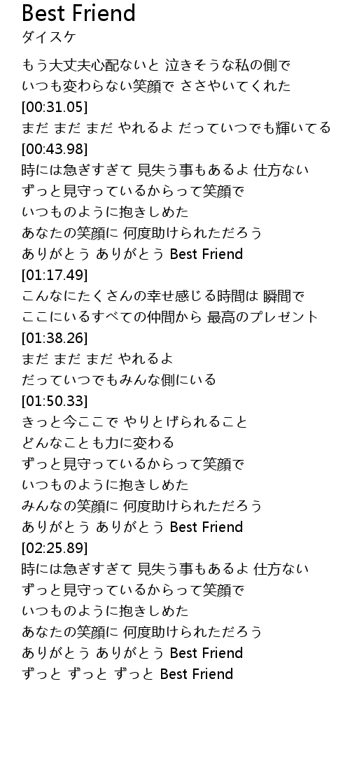 | [03:07.09] | ありがとう ありがとう Best Friend |