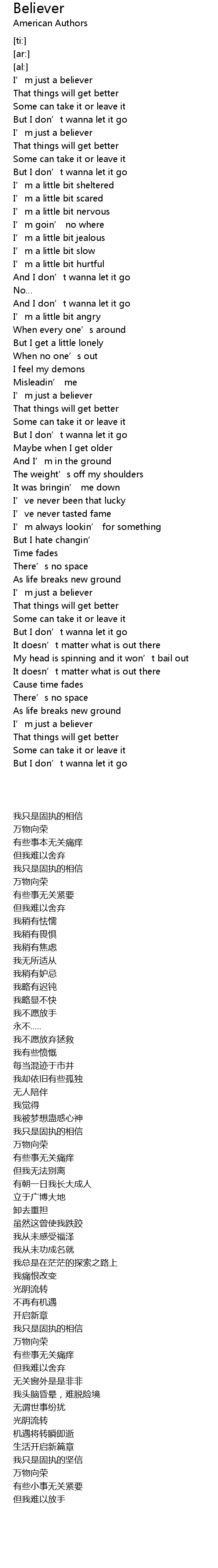 | [01:40.34] | I’m just a believer |