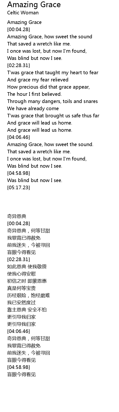 Amazing Grace, how sweet the sound. |