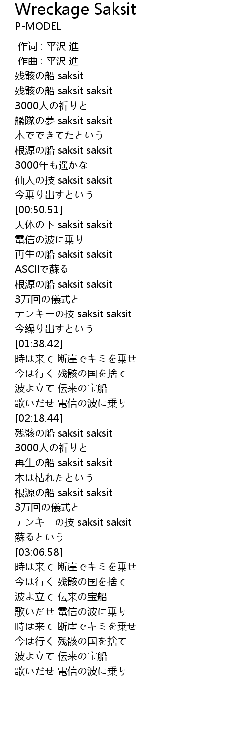 | [04:10.31] | 歌いだせ 電信の波に乗り |