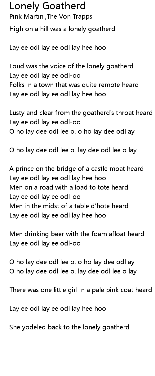 High on a hill was a lonely goatherd |