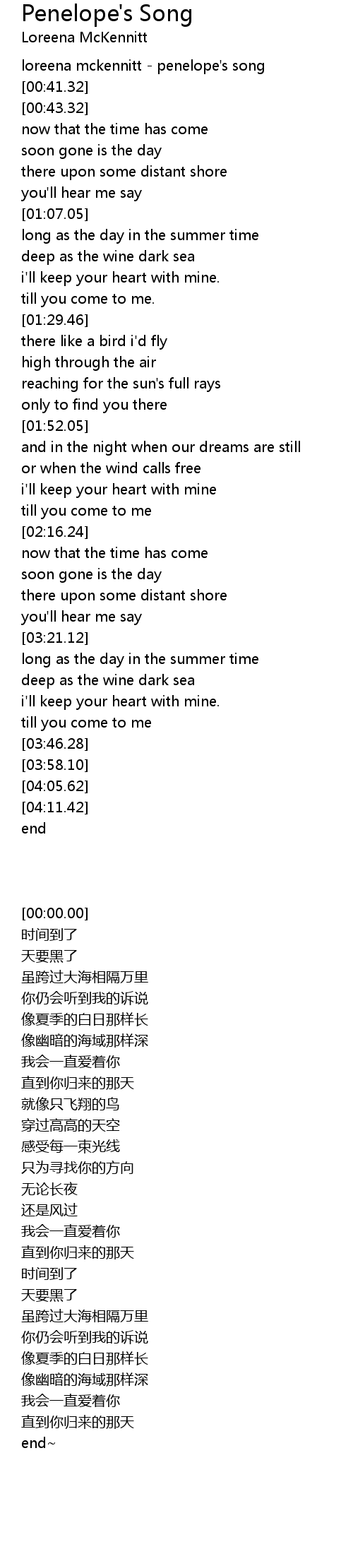 loreena mckennitt - penelope's song |