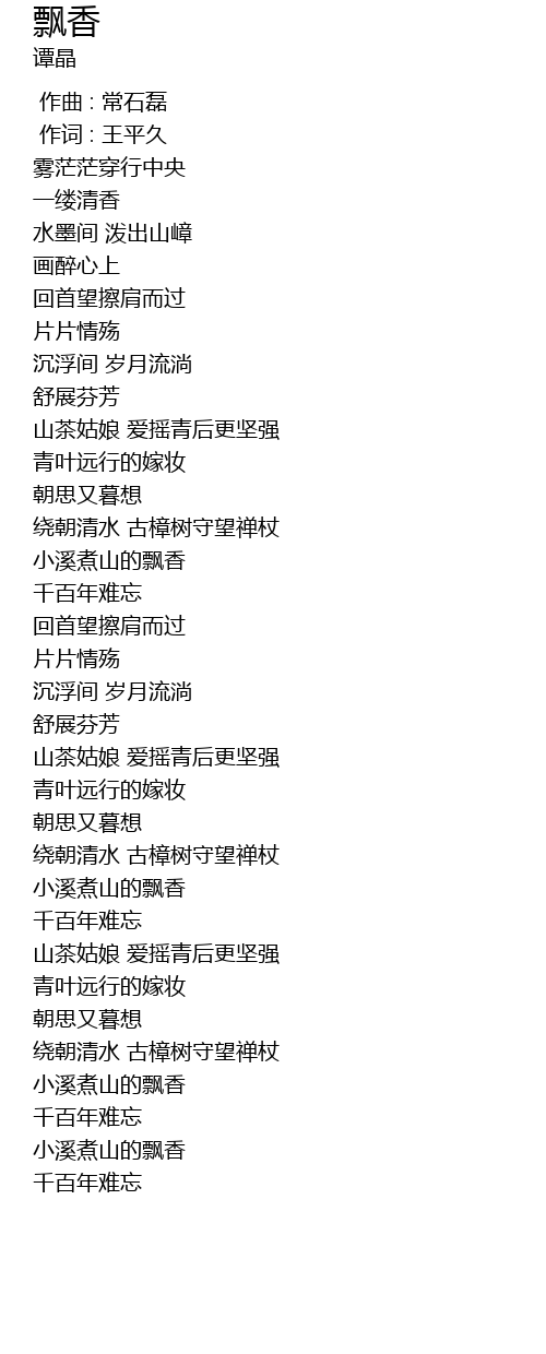 | [01:38.760] | xiao xi zhu shan de piao xiang |