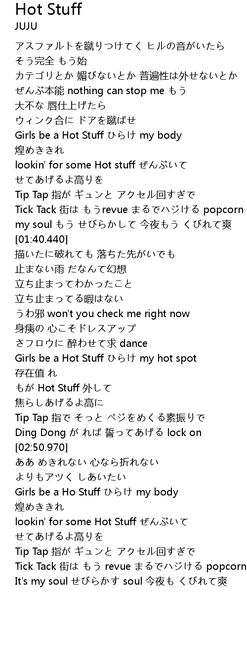 | [02:17.210] | Girls be a Hot Stuff my hot spot |