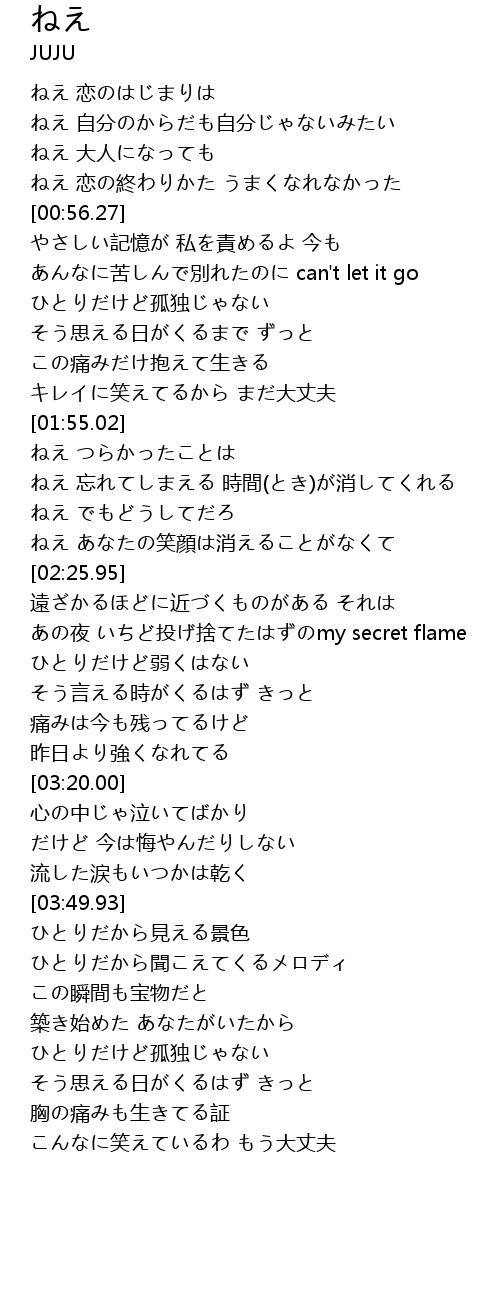 | [00:48.34] | ねえ 恋の終わりかた うまくなれなかった |