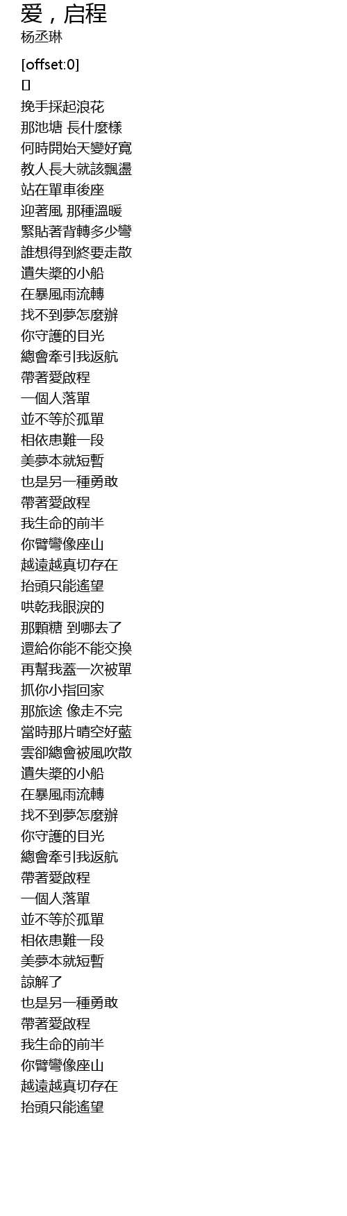| [03:24.674] | dài zhe ài qǐ chéng |