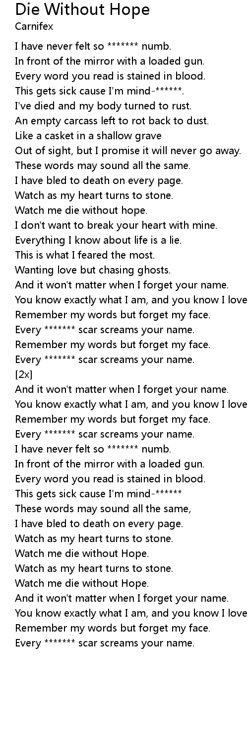 Watch me die without Hope. |