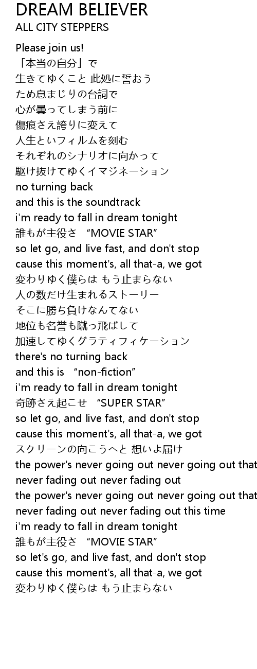 | Song | DREAM BELIEVER |