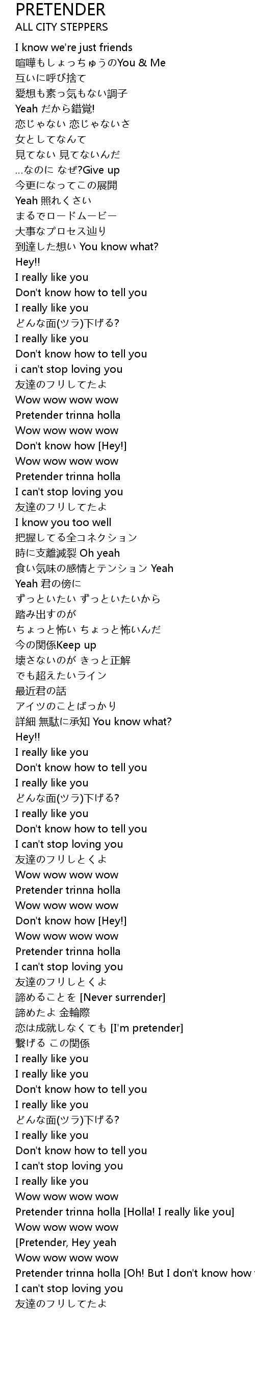 | Don' t know how Hey! Pretender, Hey yeah | |