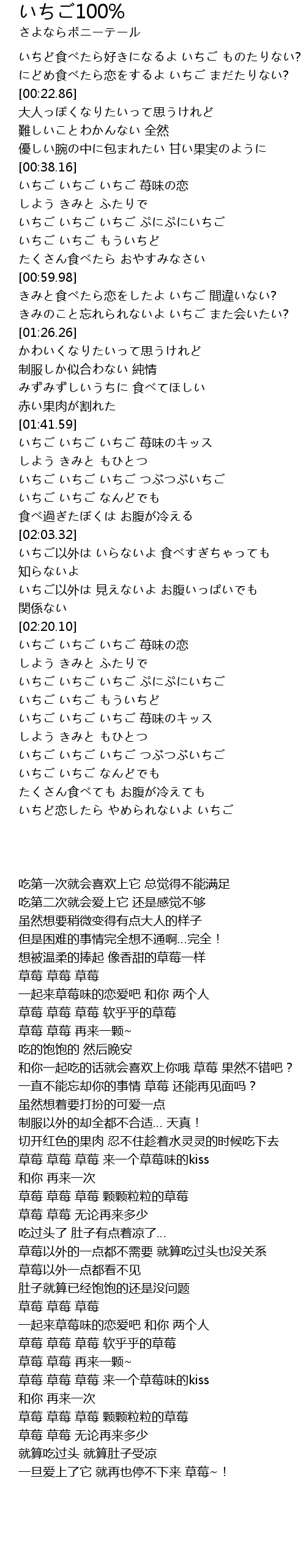 | [02:58.77] | いちど恋したら やめられないよ いちご |
