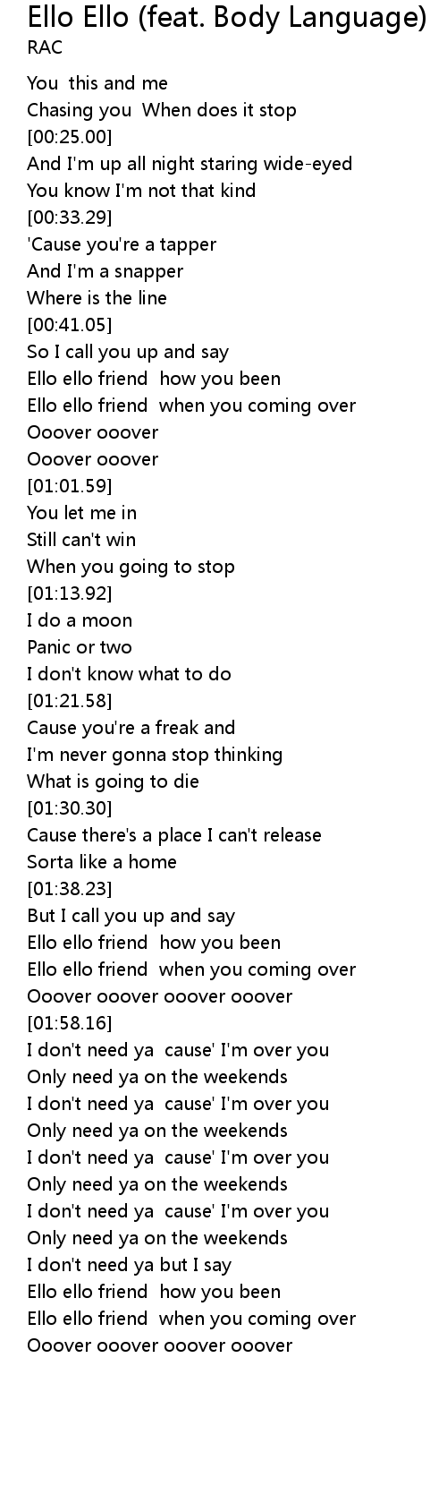 Ello ello friend how you been |