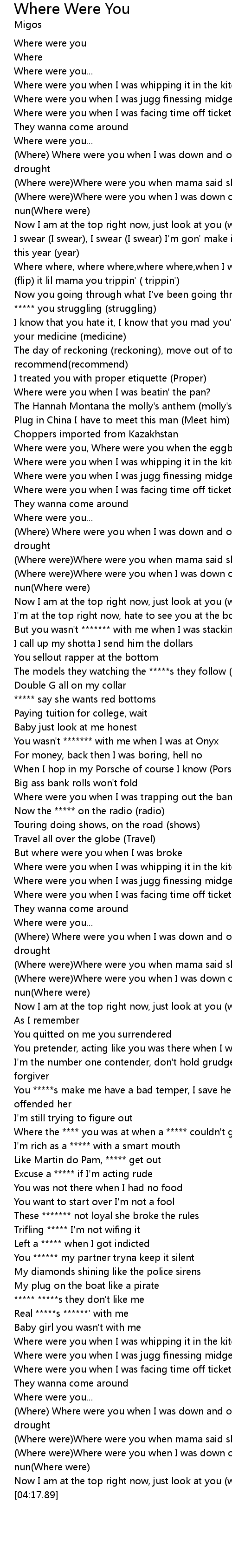 Where the **** you was at when a ***** couldn't get out |