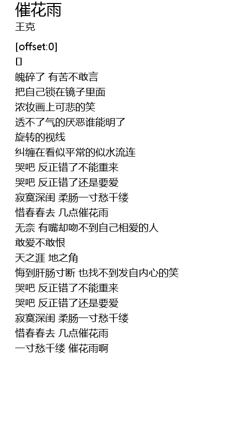 | [02:38.700] | xī chūn chūn qù jǐ diǎn cuī huā yǔ |