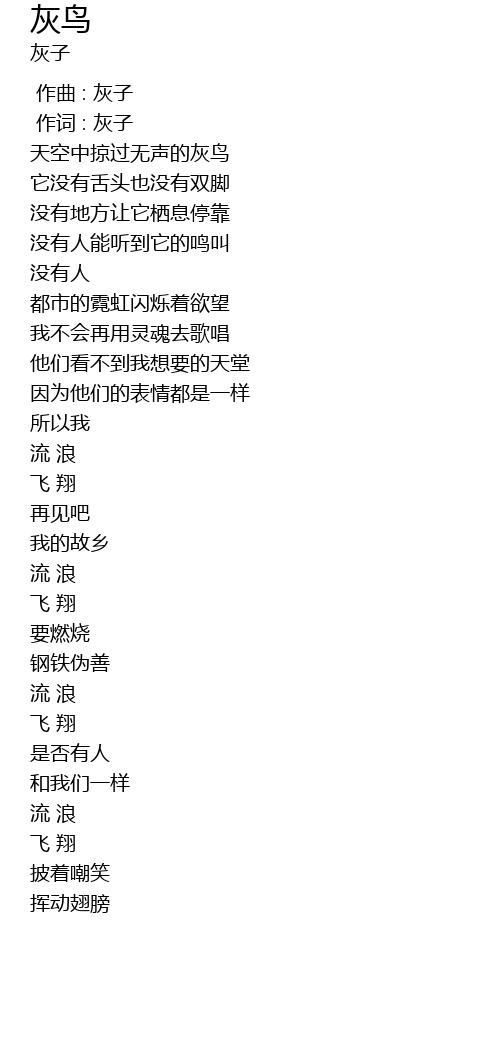 | Song | 灰鸟 |