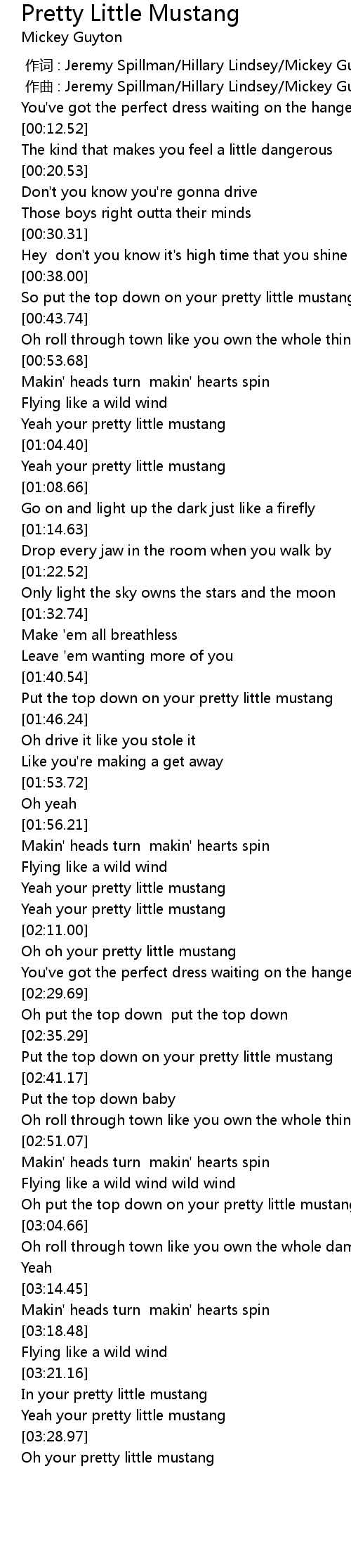 | [02:36.31] | Put the top down on your pretty little mustang |