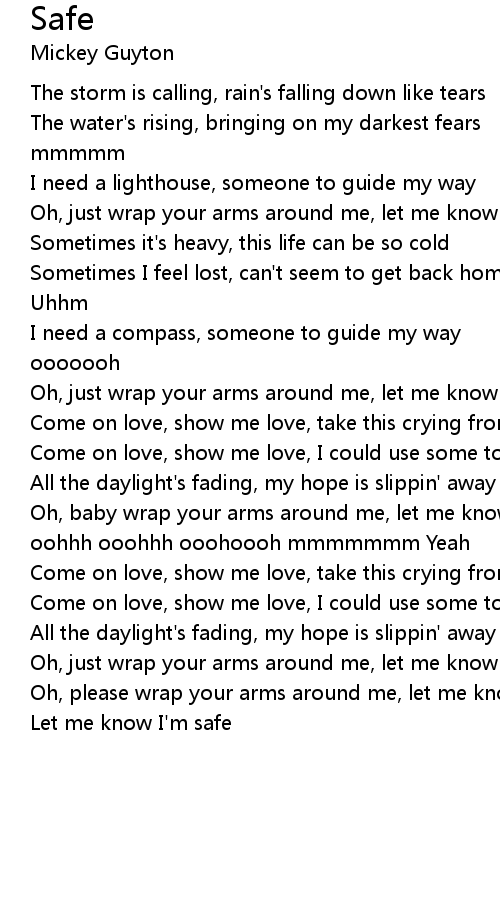 Oh, baby wrap your arms around me, let me know I'm safe |