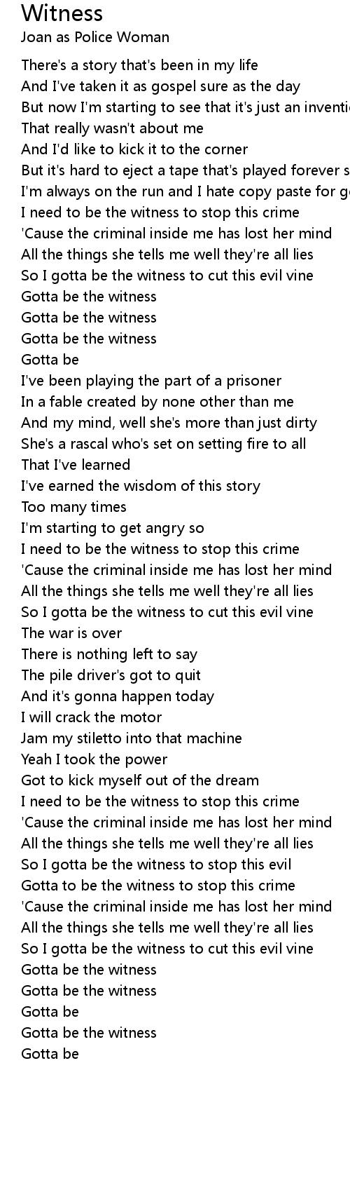 Gotta to be the witness to stop this crime |