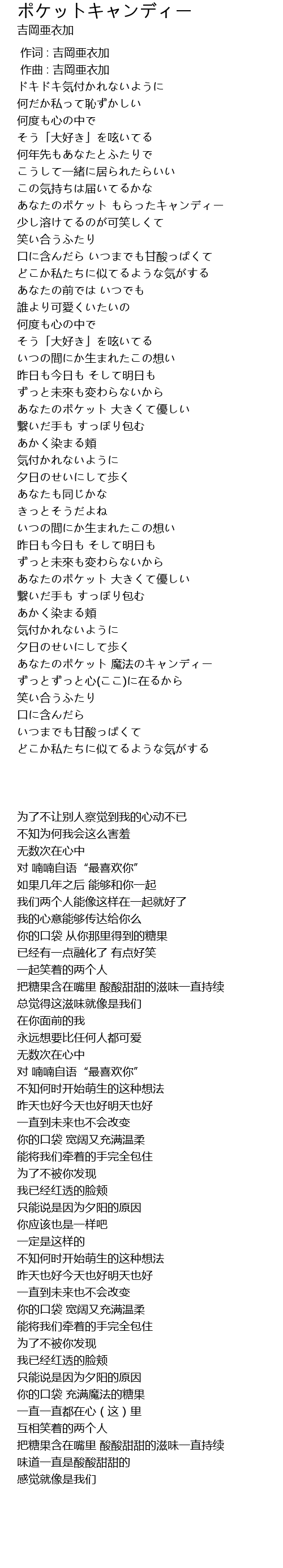 | [00:47.18] | あなたのポケット もらったキャンディー |