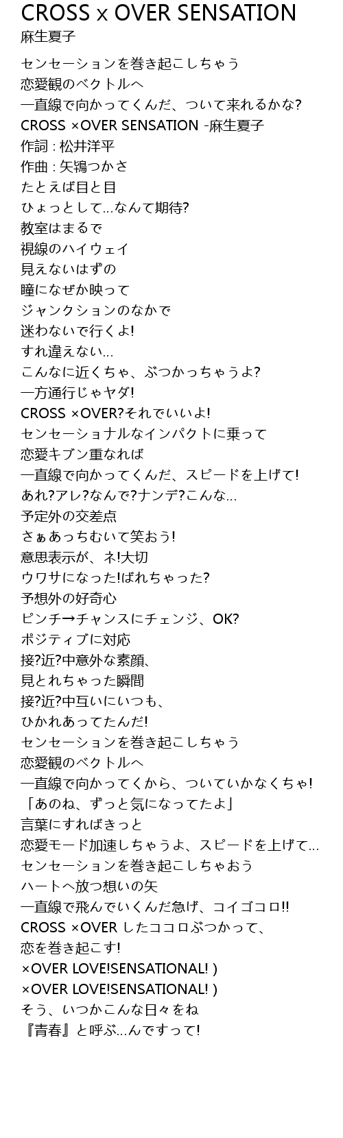 | [00:14.650] | CROSS ×OVER SENSATION -麻生夏子 |