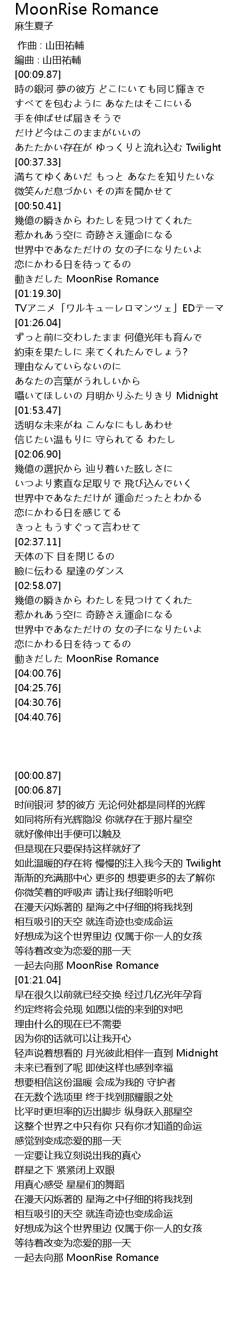 | [00:30.66] | あたたかい存在が ゆっくりと流れ込む Twilight |