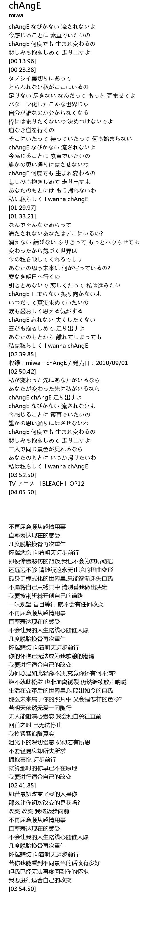 | [02:41.85] | 収録:miwa - chAngE/発売日:2010/09/01 |