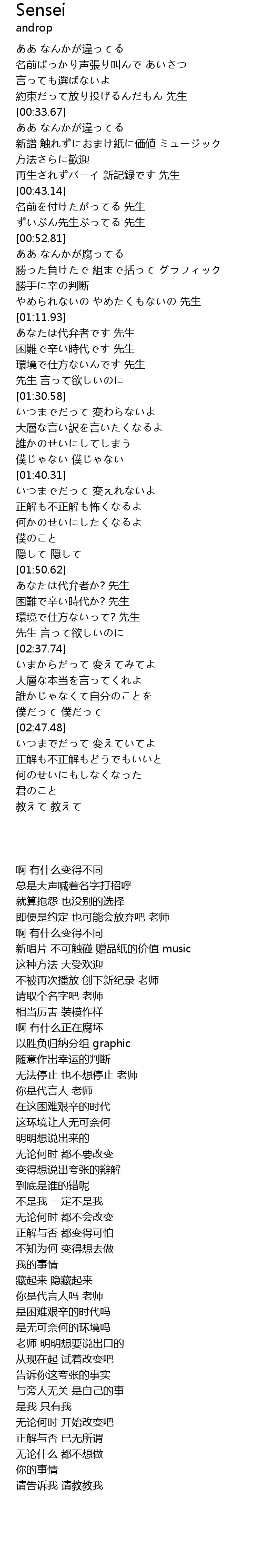 | [02:21.51] | あなたは代弁者か? 先生 |