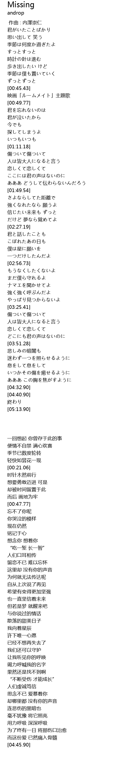 | [00:00.00] | 作曲 : 内澤崇仁 |