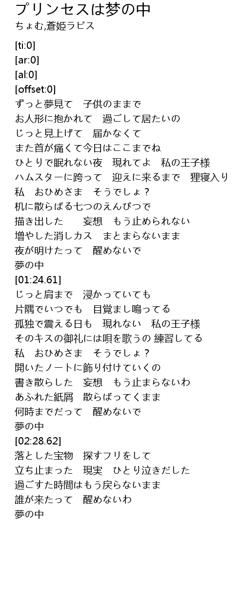 | [02:01.61] | 私 おひめさま そうでしょ? |