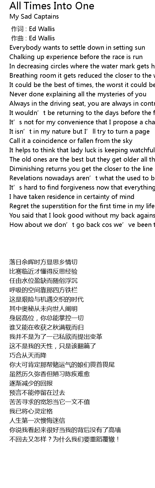 | Song | All Times Into One |