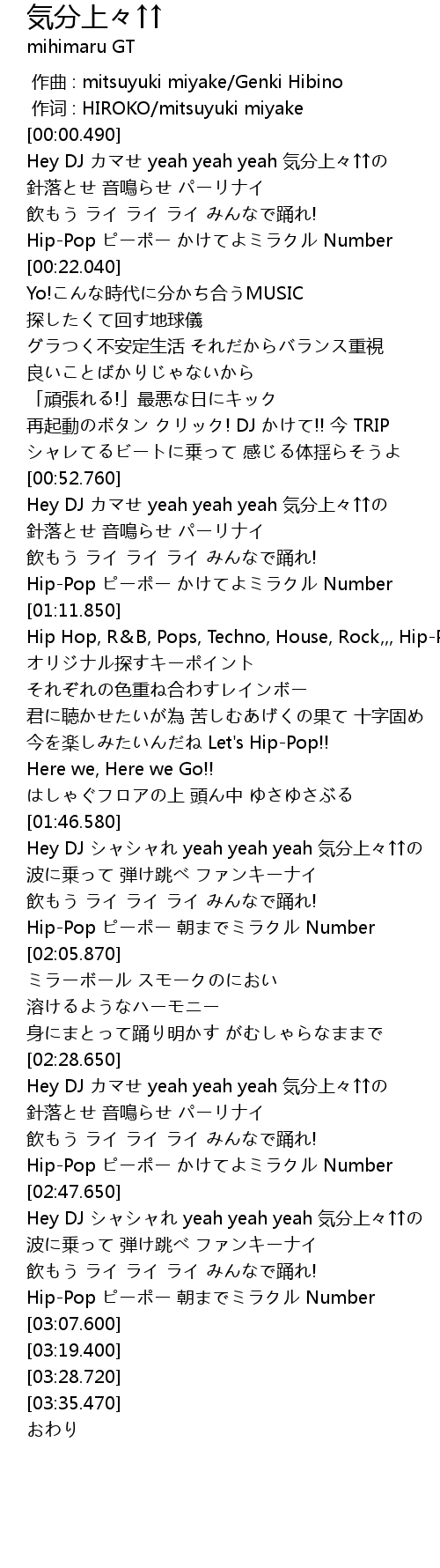 | [03:01.370] | Hip-Pop ピーポー 朝までミラクル Number |