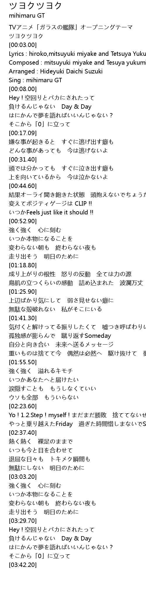 | [00:02.00] | ツヨクツヨク |