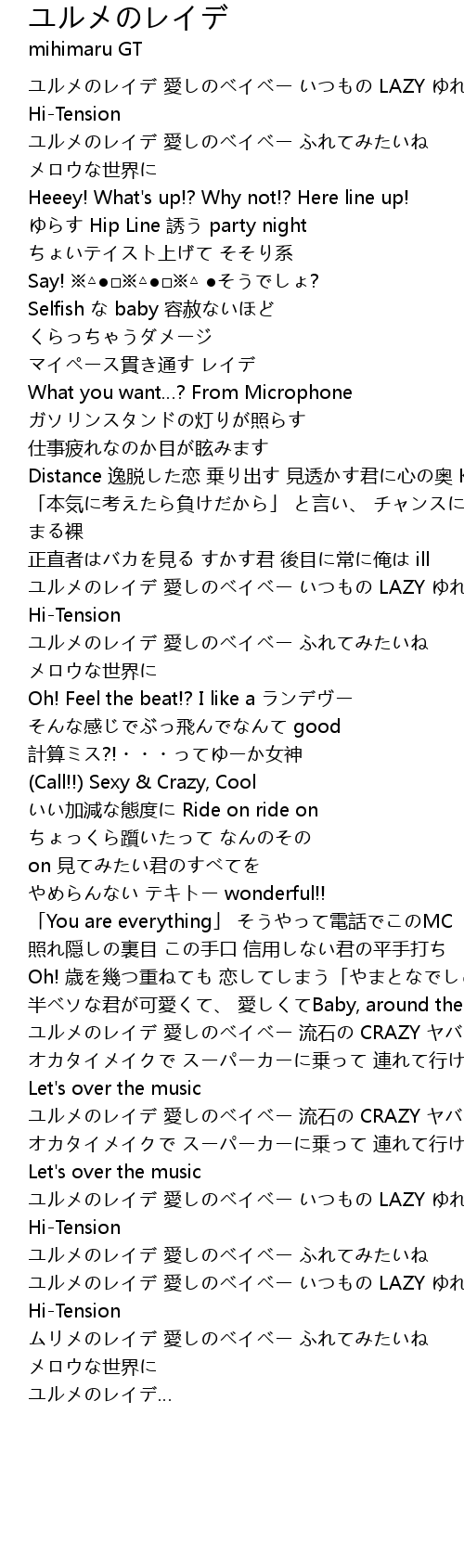 | ユルメのレイデ 愛しのベイベー いつもの LAZY ゆれて Hi-Tension | |