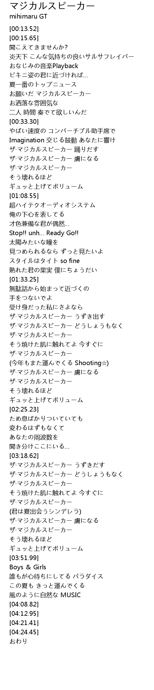 | [03:19.65] | ザ·マジカルスピーカー うずきだす |