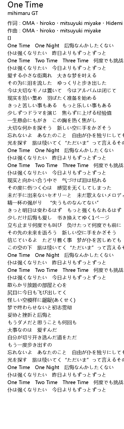 | 作词:OMA・hiroko・mitsuyuki miyake・Hidemi Ino | |