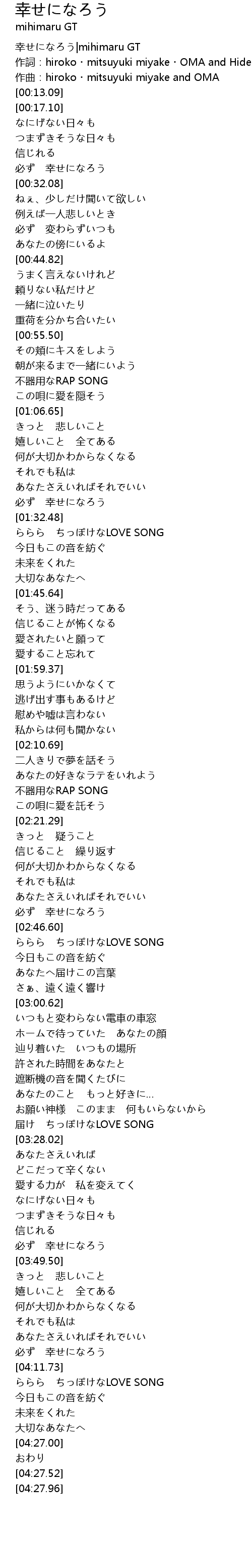 | [00:00.95] | 幸せになろう|mihimaru GT |