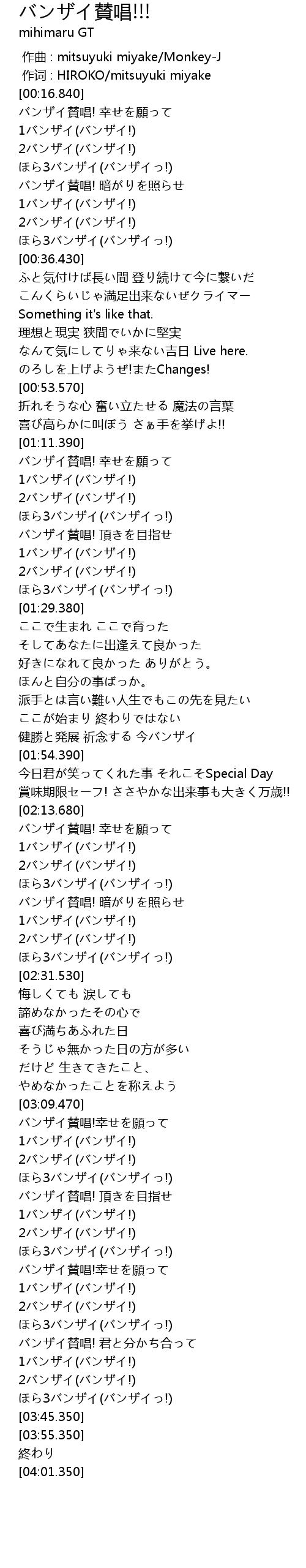 | [03:23.250] | 1バンザイ(バンザイ!) |